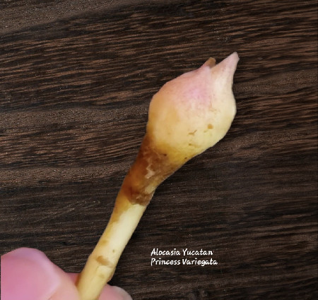 Alocasia Yucatan Princess Variegata KNOLL (baby plante)