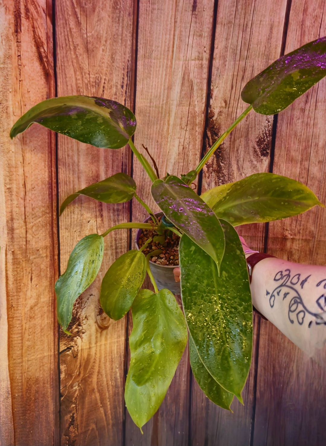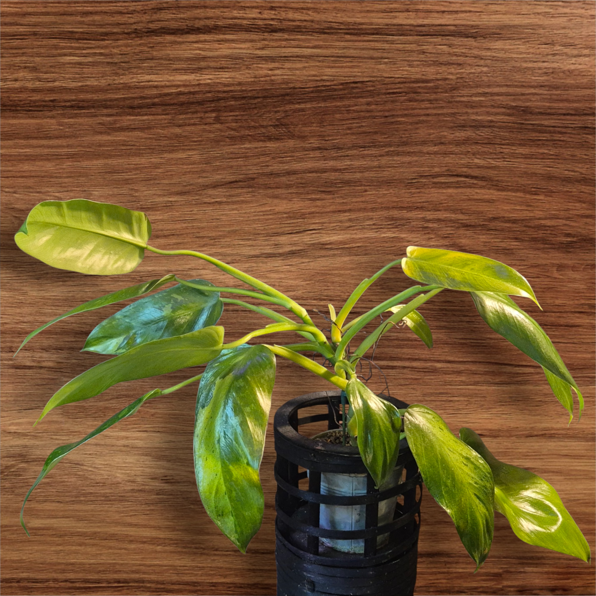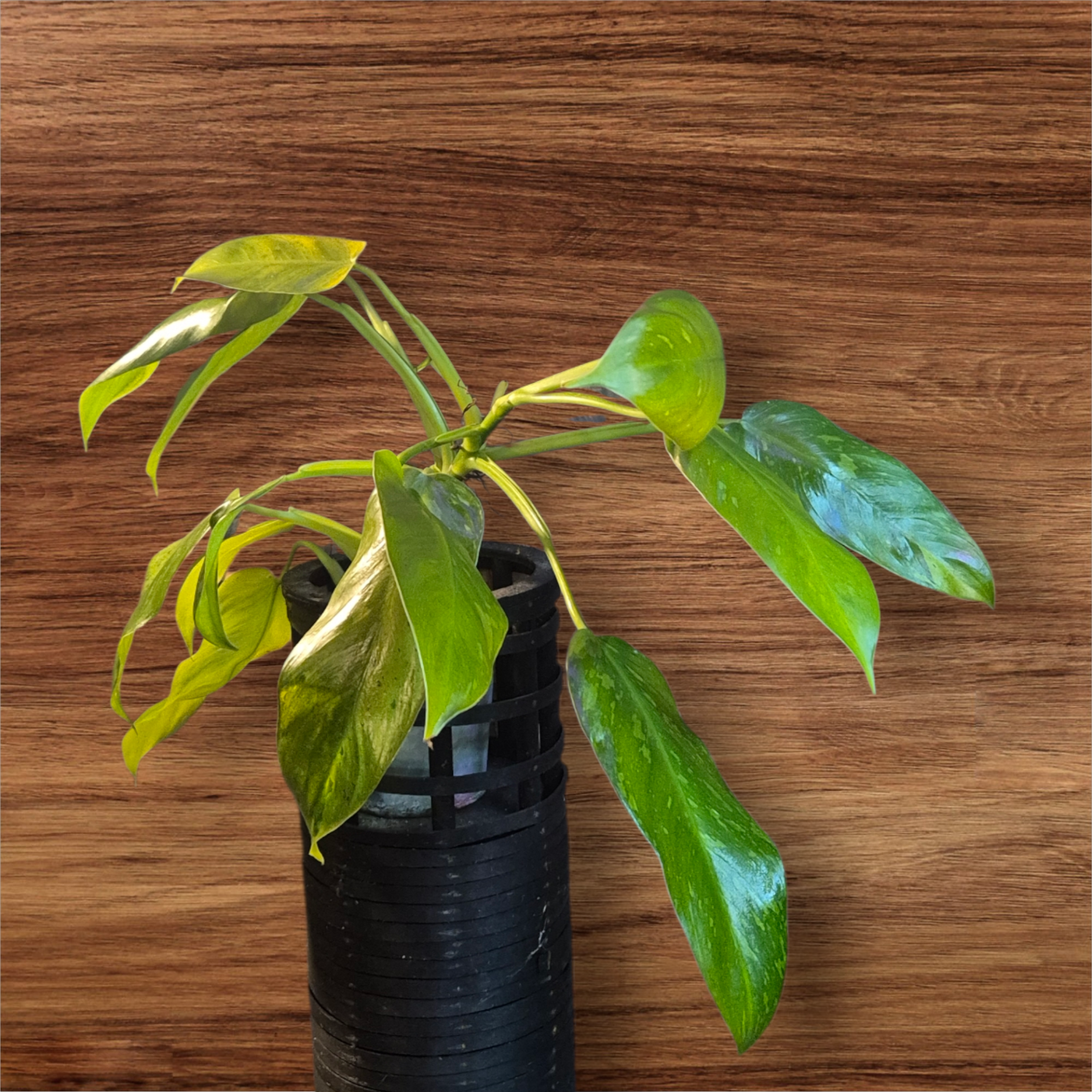 Philodendron Jose Buono - fantastisk og sjelden variant, kjent for sine store, spraglete blader med hvite og grønne nyanser.